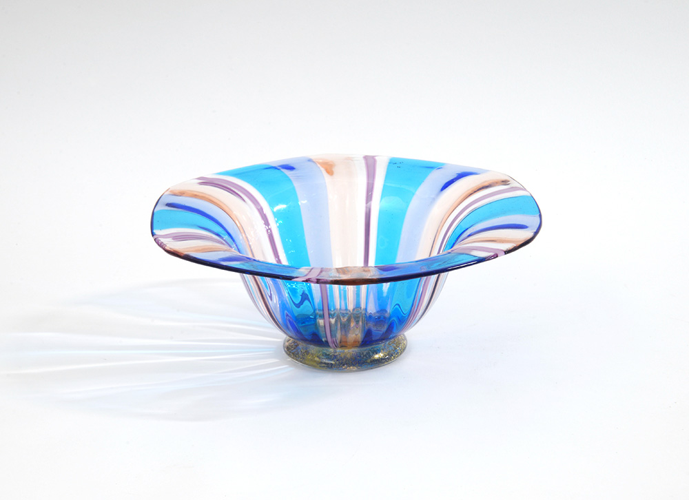 Coppetta con vaso in vetro a canne policrome e applicazione di foglia d’oro....