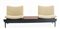 Sofa with two movable seats and a shelf. Produced by Bramin, Denmark, 1950s. Solid black painted and teak veneered wood, padded seats cladded with beige fabric. (180x77x59 cm.) (defects and losses)