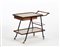 Carrellino a due ripiani e un cassetto in teak massello, struttura in metallo verniciato nero. Italia, anni '50. (cm 81x67x45) (lievi difetti)
