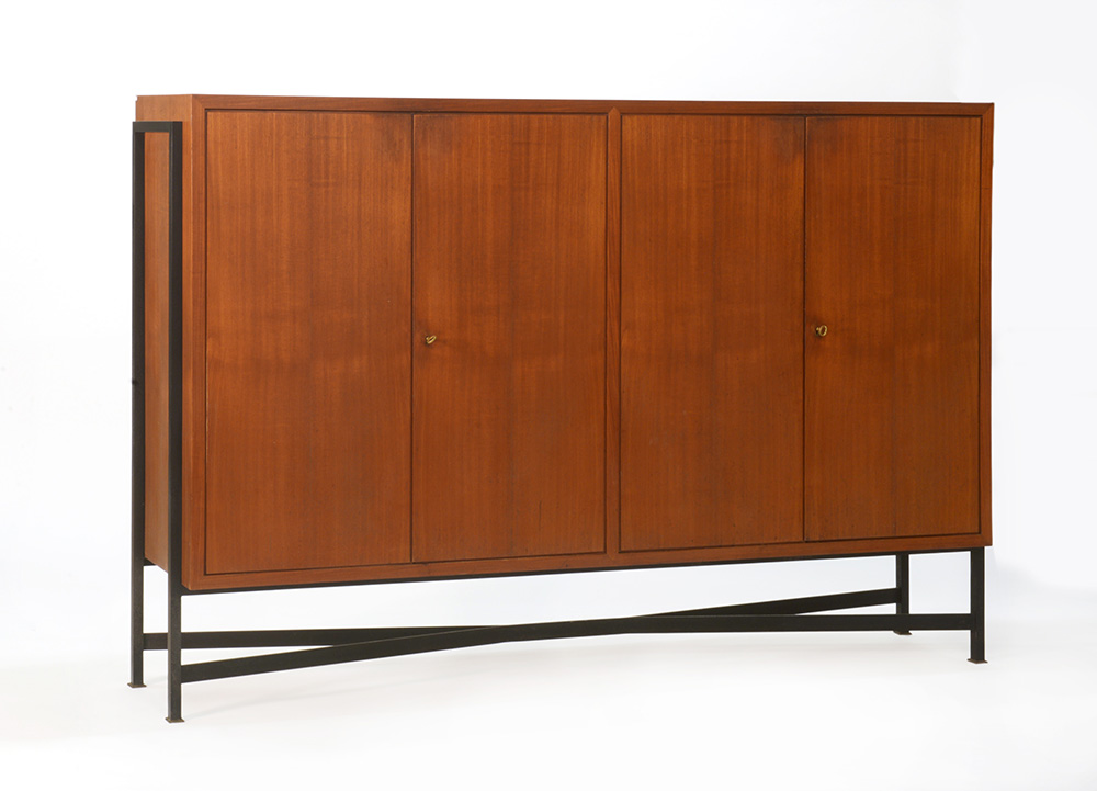 Madia. Esecuzione Arredamenti Borghi, Cantù, 1964/1965. Legno massello e impiallacciato con gambe in profilato d'acciaio verniciato nero. Piedini in ottone. (cm 205x138,5x48,2) (lievi difetti)