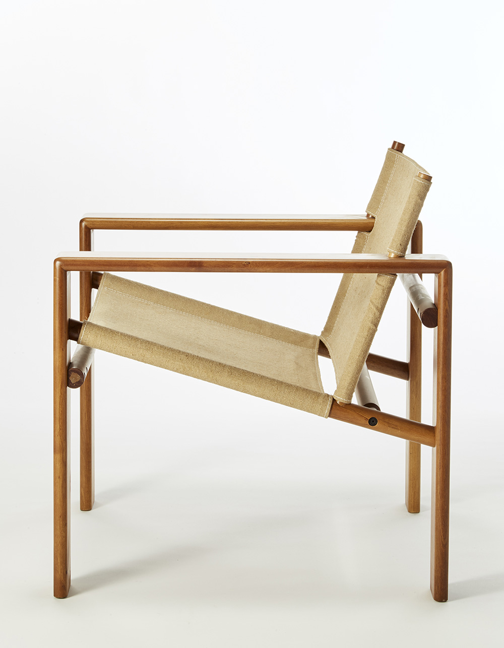 * Armchair model "Laser". Produced by Mobilgirgi, Cantu, 1970s. Wooden structure, raw hemp seat and backseat. (70x71x65 cm.)