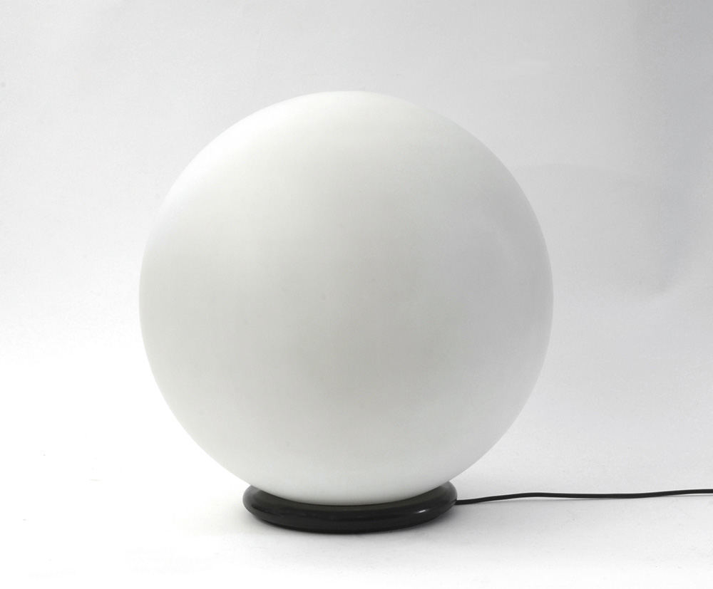 Lampada da tavolo con diffusore a sfera in vetro incamiciato lattimo satinato...