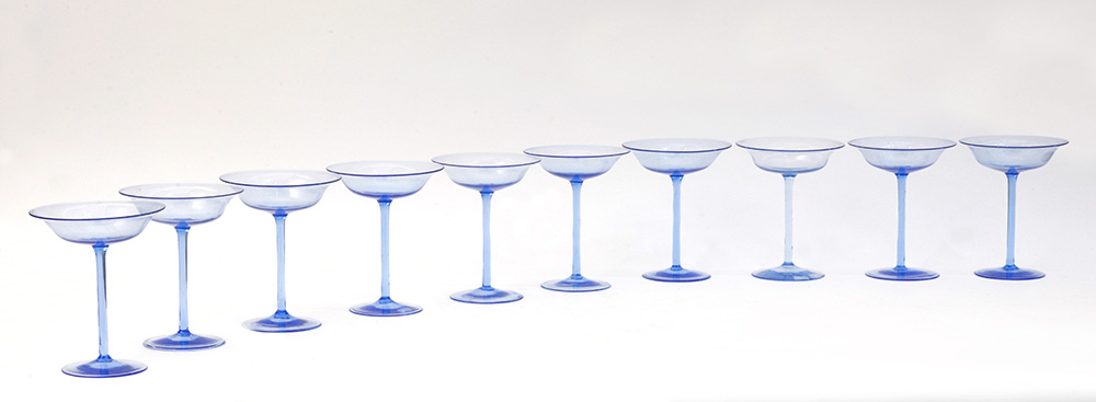 Manifattura di Murano Lotto di dieci coppe in vetro soffiato azzurrino...