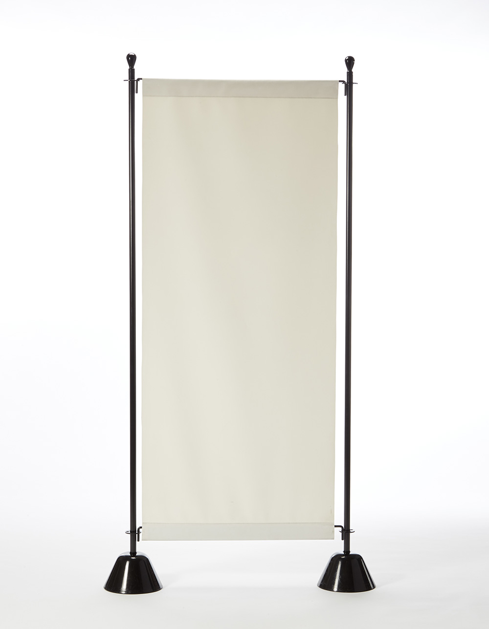 * Paravento modello "Servento". Produzione Zanotta, Milano, 1986. Base in propilene, asta di sostegno in acciaio color nero e telo bianco in tessuto industriale. (cm 66x150)