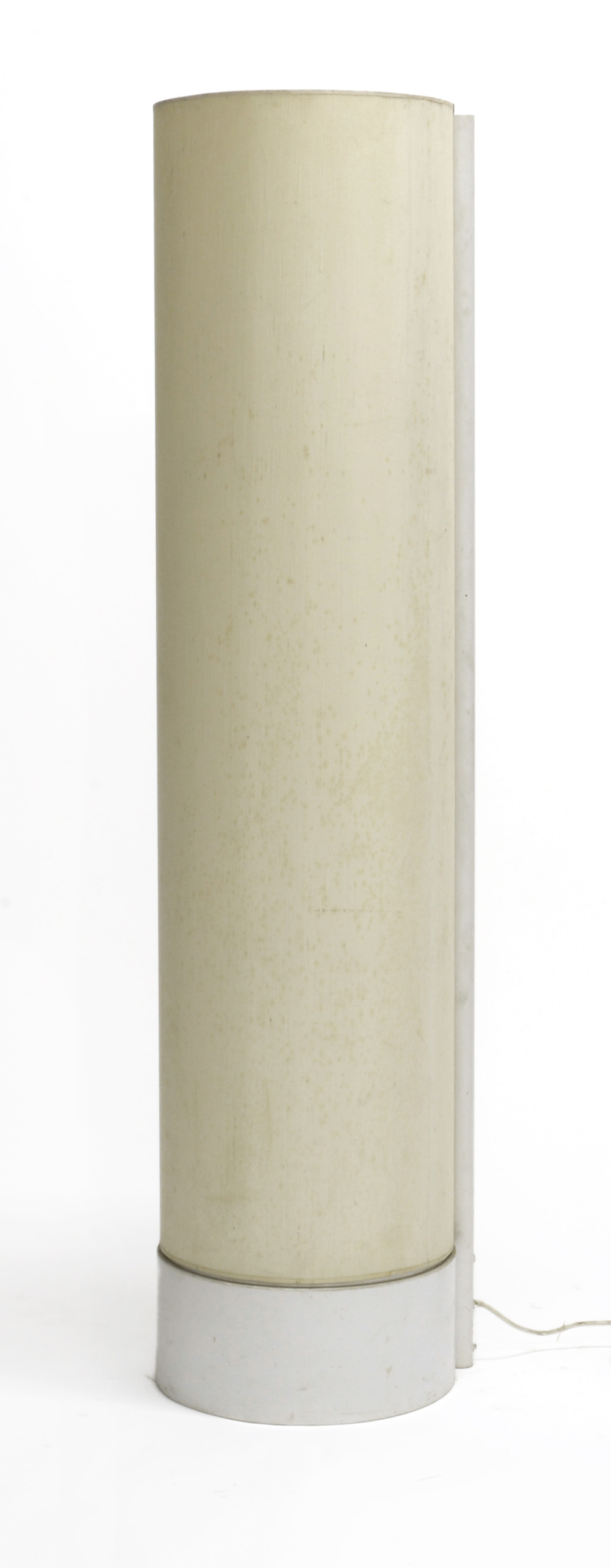 Lampada da terra modello "Cilindro". Produzione Quattrifolio, Milano, 1976. Metallo laccato bianco e tessuto. (h cm 150) (difetti)