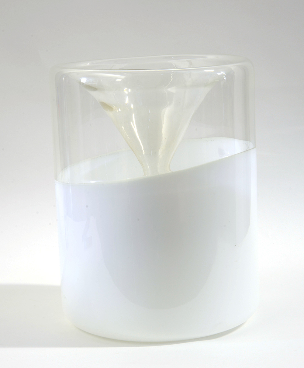 Part of a cylindrical suspension lamp. Manufacture of F.lli Toso, Murano, second half 20th century. Lattimo glass and crystal. (h 39 cm.; d 29.5 cm.)