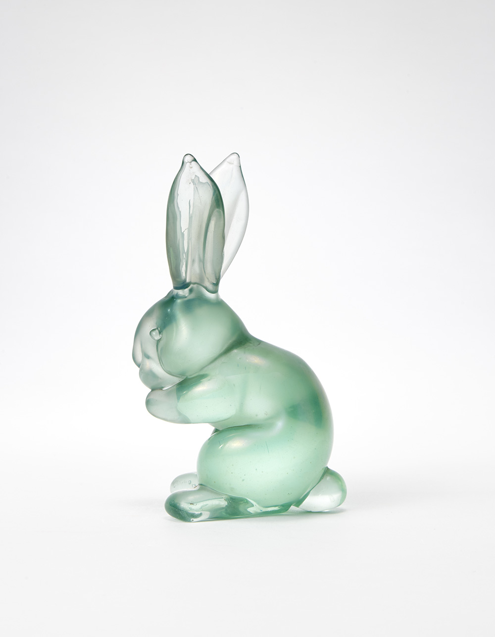 Seguso "Coniglio"Scultura in vetro massello trasparente iridato sulla...