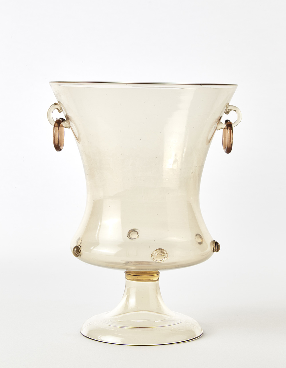 Manifattura di Murano Coppa con due anse ad anelli in vetro soffiato...