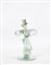 Scultura in vetro sommerso verdino fortemente iridato con applicazioni a caldo in pasta vitrea lattimo. Anni '30/'40. (h cm 22)