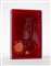 Dark red solid glass sculpture craved with figures and painted with two orange suns.. Sigled on the side. (14.5x22.5x4 cm.)