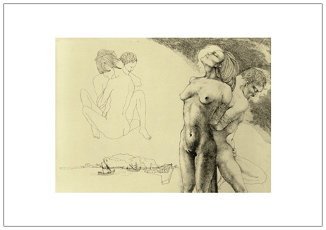UGO ATTARDI Sori 1923 – Roma 2006 …d’ora in ora la crudel morte del fuoco aspettando… 1972 Acquaforte es.50/100. Firma e data in b. a d. (35 x 50 foglio – 24,5 x 34 inc.) L’opera fa parte della cartella “La donna della cuba”, composta da 4 acqueforti impresse al torchio a mano dalla Stamperia Barrovecchio di Roma su carta Rosaspina delle Cartiere Miliani di Fabriano, per la novella sesta della quinta giornata del Decameron di Boccaccio, Sellerio Editore, Palermo, 1972. B.A.: 70