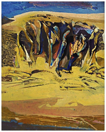 GIUSEPPE MARTINELLI Viareggio 1930 – Milano 2016 La spiaggia dei narcisi marini Olio e applicazioni su tela 50 x 40. Firma in b. a d.; sul verso firma, titolo, tecnica e misure. B.A.: 100