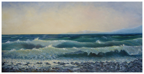 MAURO PUPPO Livorno Mareggiata Olio su tela 60 x 120. Firma in b. a d.; sul verso titolo, firme e scritta studio dell’artista. B.A.: 100