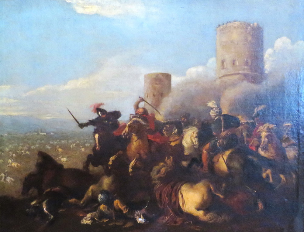 JACQUES COUTOIS detto Borgognone 1621 - olio su tela "battaglia" cm 52 x 41 provenienza: Duca di Beaufort Badminton