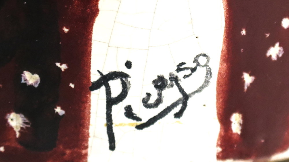 PABLO PICASSO ATTR Picasso Pablo attribuito (18881 -1973) Vaso in ceramica dipinta "civetta" h: cm 55 Realizzato dopo il 1947 Firmato, interno del collo reca sigillo "Madoura" Provenienza: Collezione privata