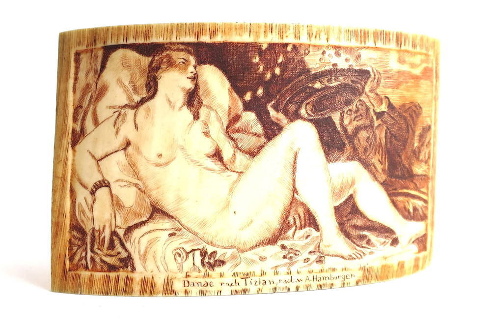 PLACCA In avorio "Donna sdraiata" - cm 5.8 x 9.4 - Germania