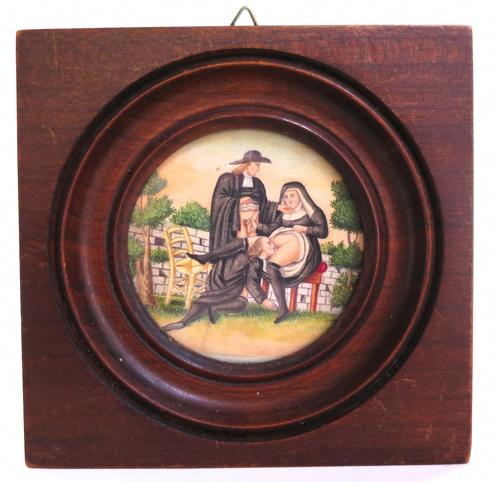 Lotto 33 | MINIATURA "2 frati con suora" - cm 6.4 - 1920 ca - Francia