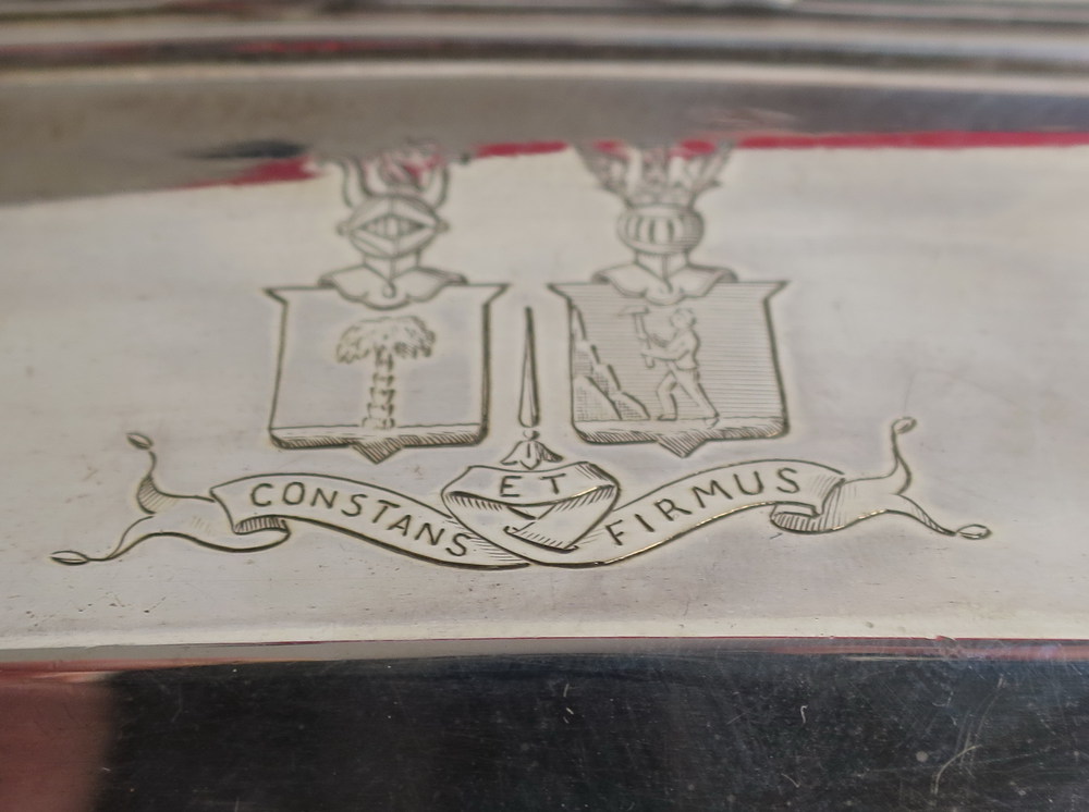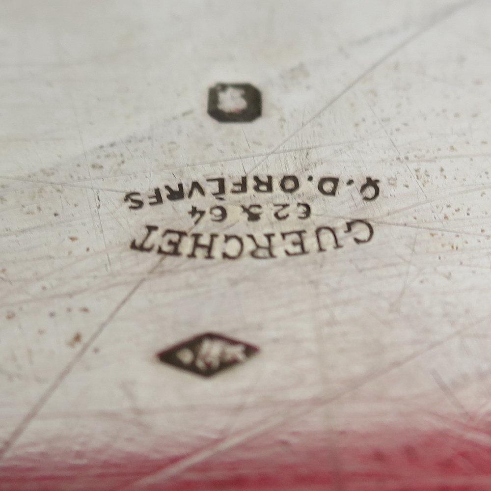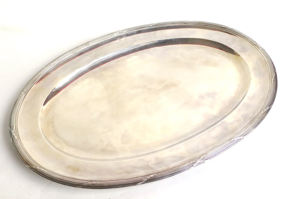 PIATTO da portata a forma ovale con bordura lavorata. Francia XIX sec. g. 1891 titolo 950/000