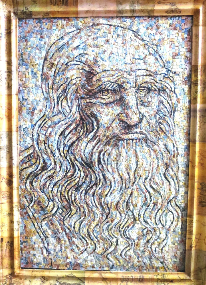 NUNZIO MONTICELLI mosaico da collezione in marmo raffigurante "Leonardo da Vinci" Nunzio Monticelli cm 58x90