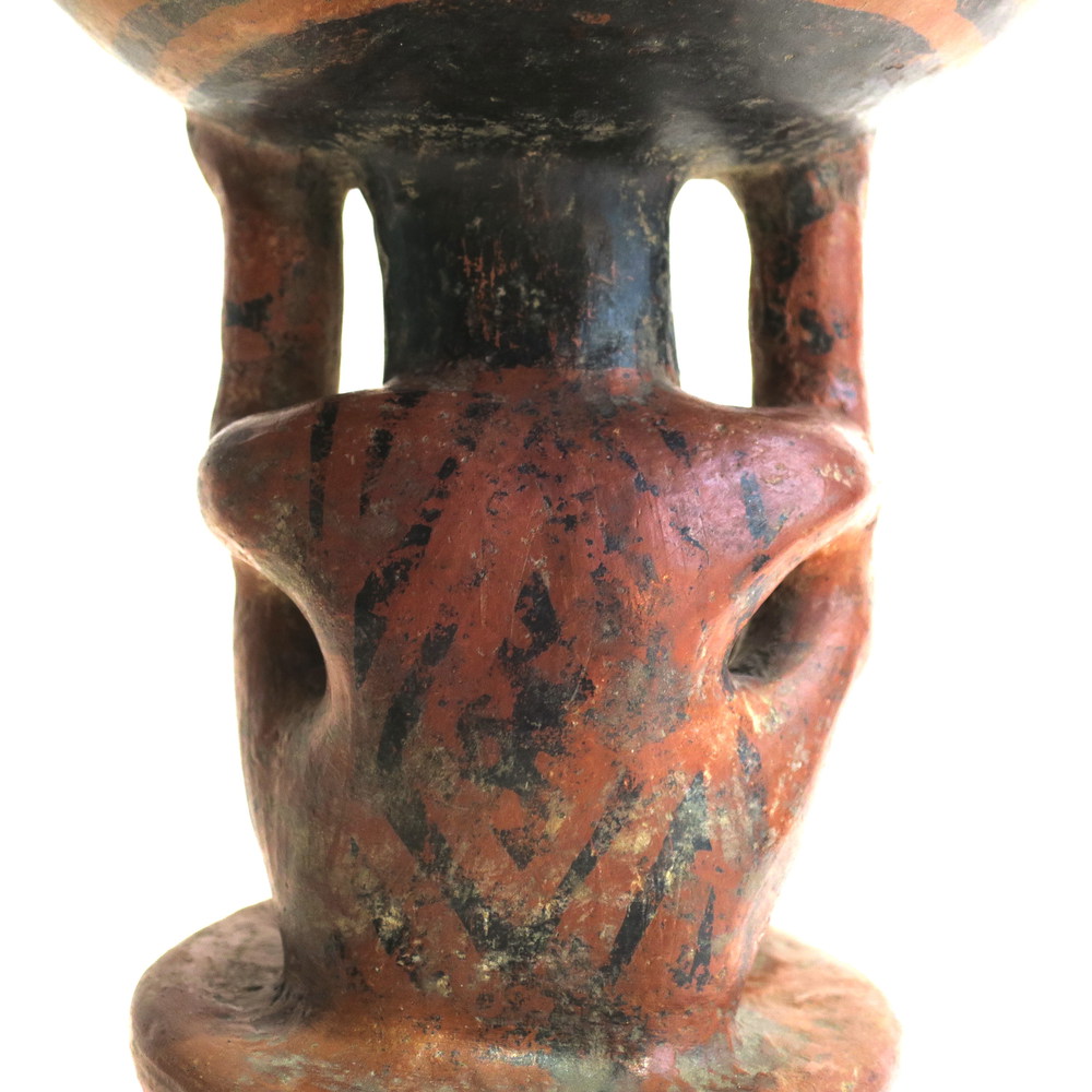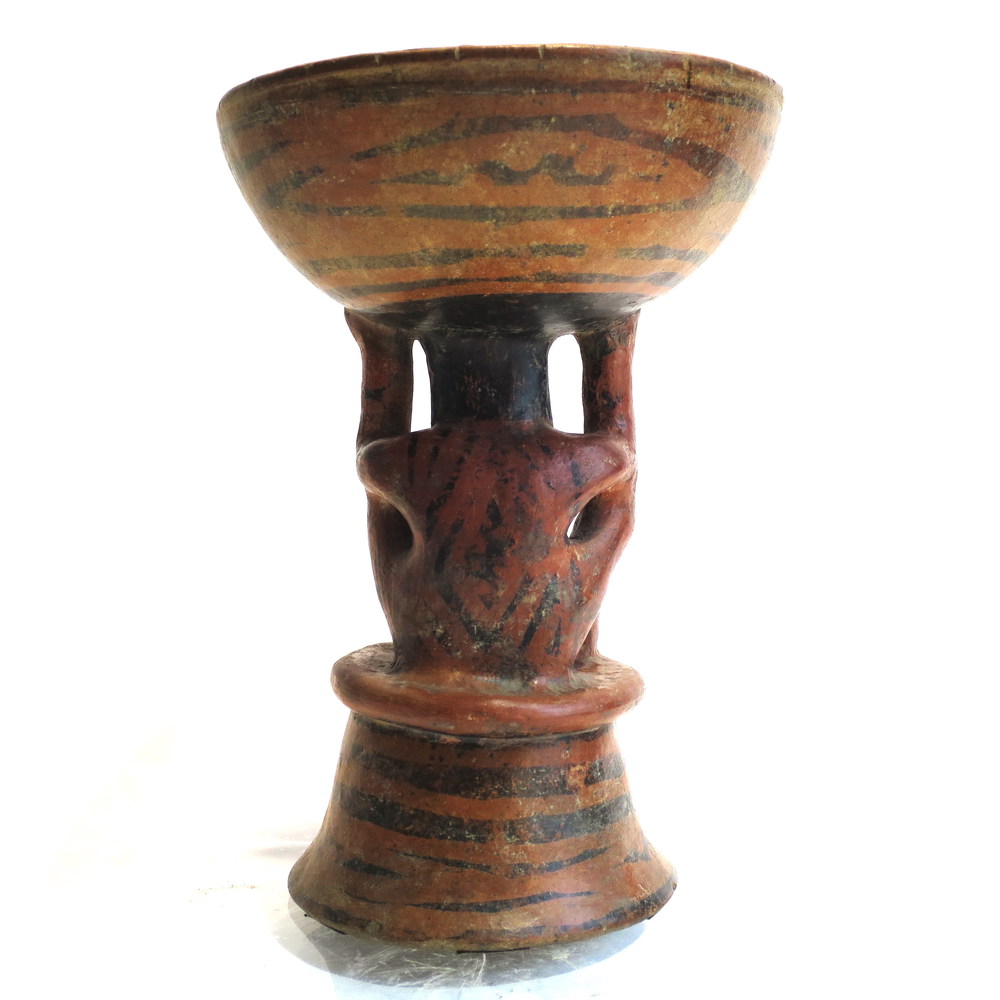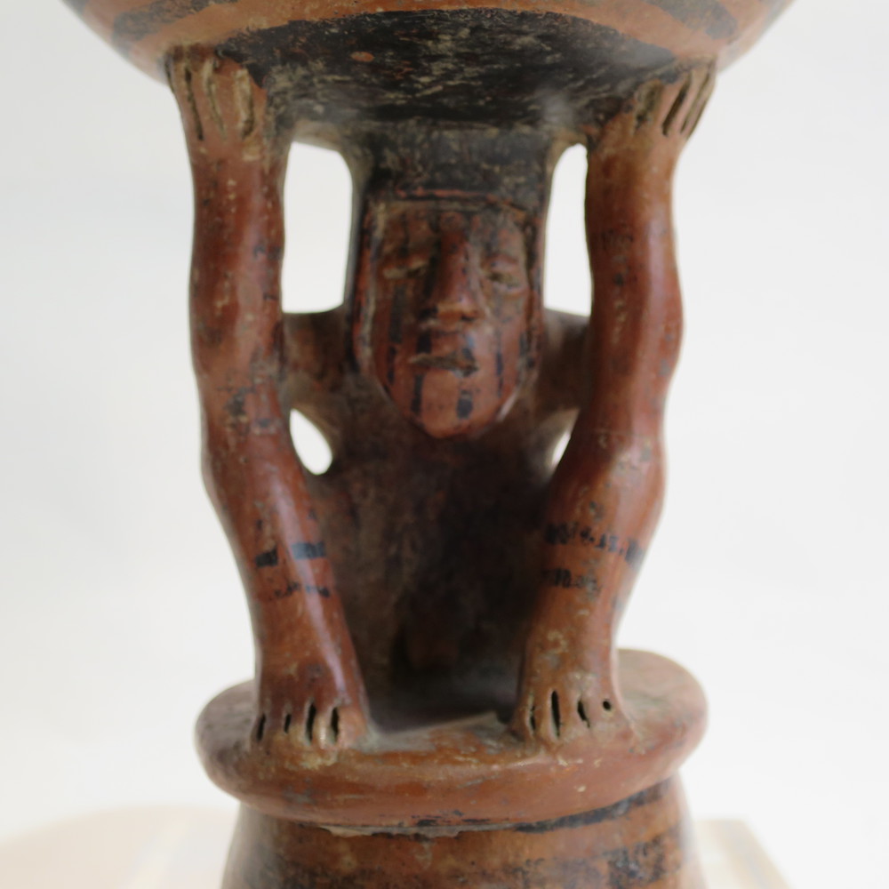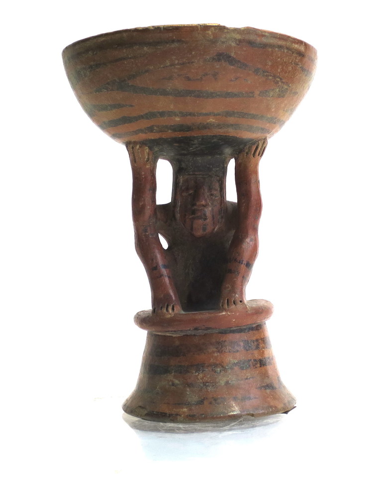 MUISCA COLOMBIA Alzata con rappresentazione antropomorfa - Colombia - Muisca - Ceramica - XIII/ XV sec. d.C. - H cm 21 - diam. cm 14.5