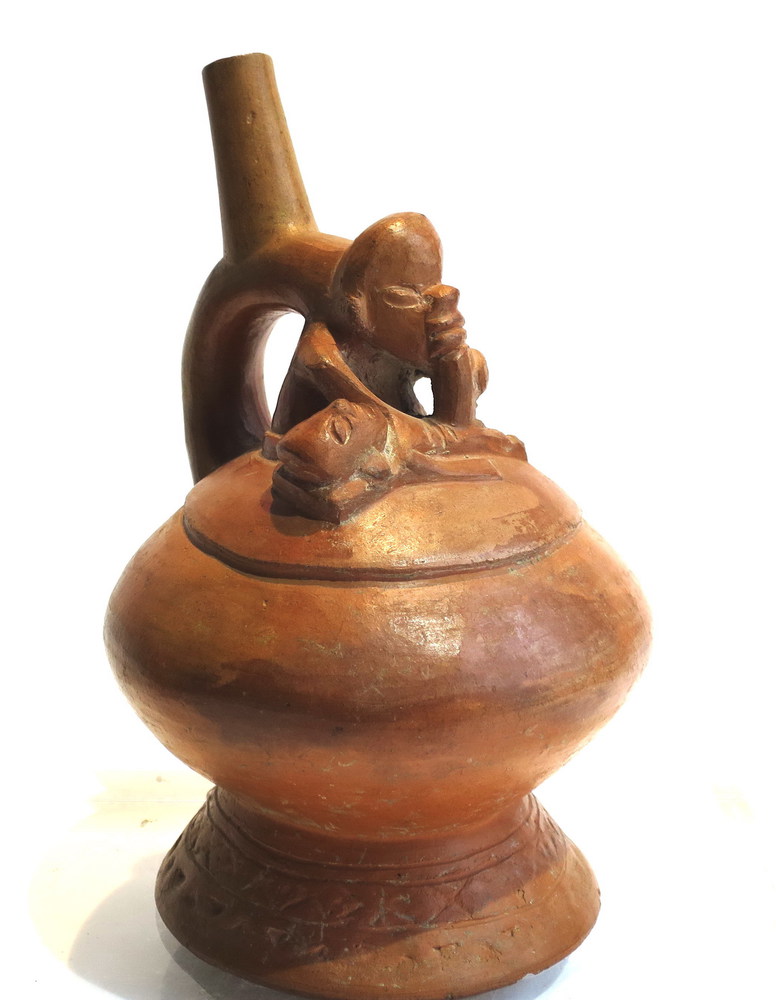 SICAN PERU' Recipiente erotico - Terracotta - Sican lambayeque - Perù - VIII/XI sec d.C. - H cm 23