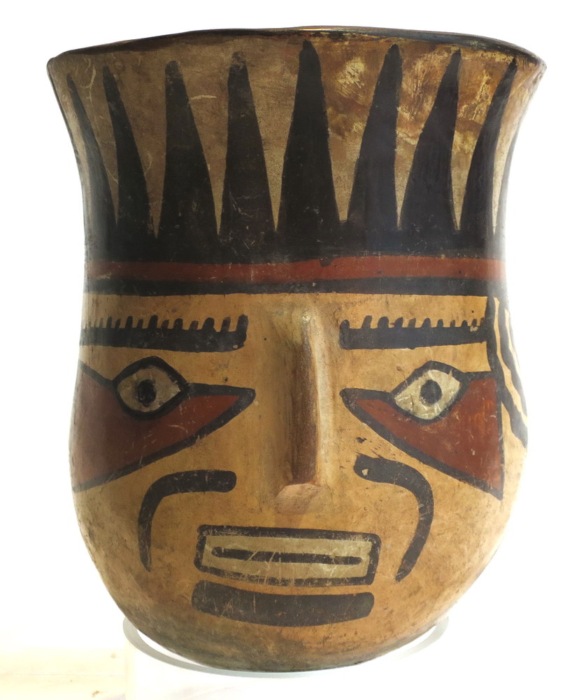 NAZCA PERU' Vaso ritratto testa umana - Terracotta - Nazca - Perù - H cm 16.5 diam. cm 13