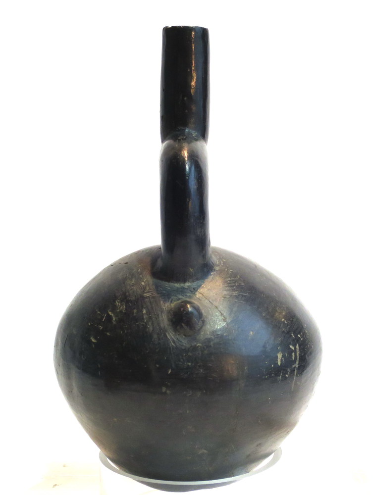 CHIMU' PERU' Bottiglia/vaso nero - Terracotta - Chimù tardo - Perù - XIV/ XVI sec. d.C.