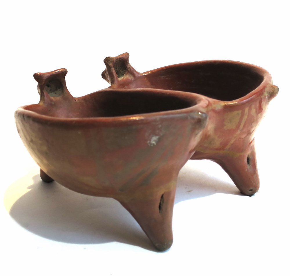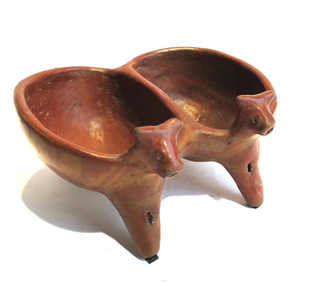 CHUPICUARO MEXICO Coppa quadrupede a doppia vasca zoomorfa - Terracotta - Mexico occidentale - Chupicuaro - 400 a.C. ca. - H cm 8.5 L cm 18 P cm 16