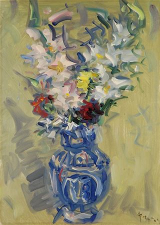 Enzo Pregno (Alessandria d'Egitto, 1898 - Firenze, 1972) Vaso di fiori Olio su tela, cm. 70x50 Firma in basso a destra e sul verso. € 600/800