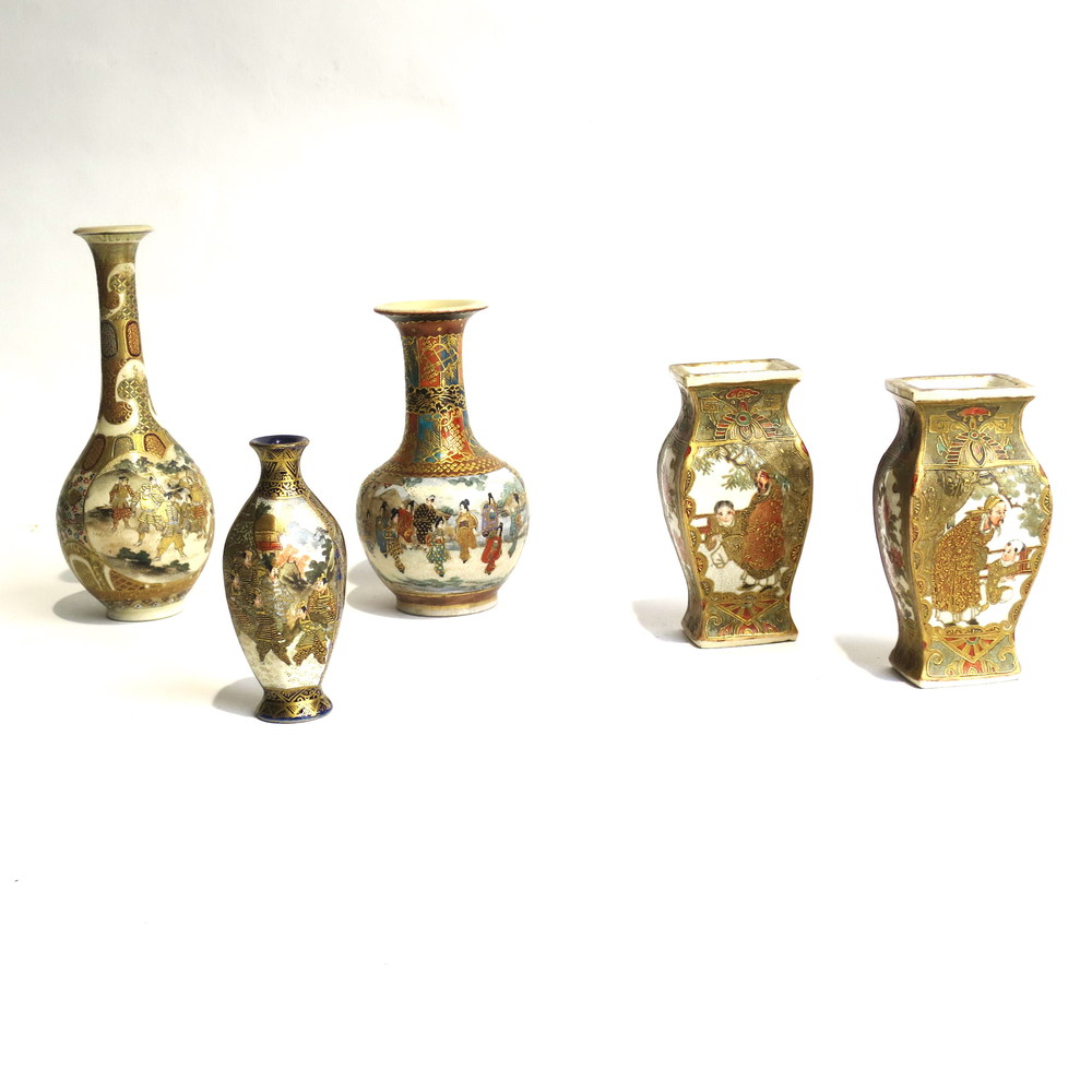 CINQUE VASETTI Vasetti in porcellana h: cm 9,5 - 9,5 - 15 - 11,5 - 8,5 Giappone