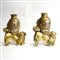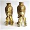 SATZUMA Coppia di vasi in porcellana decorata e dorata poggianti su cane di fho. H: cm 18,5 Giappone