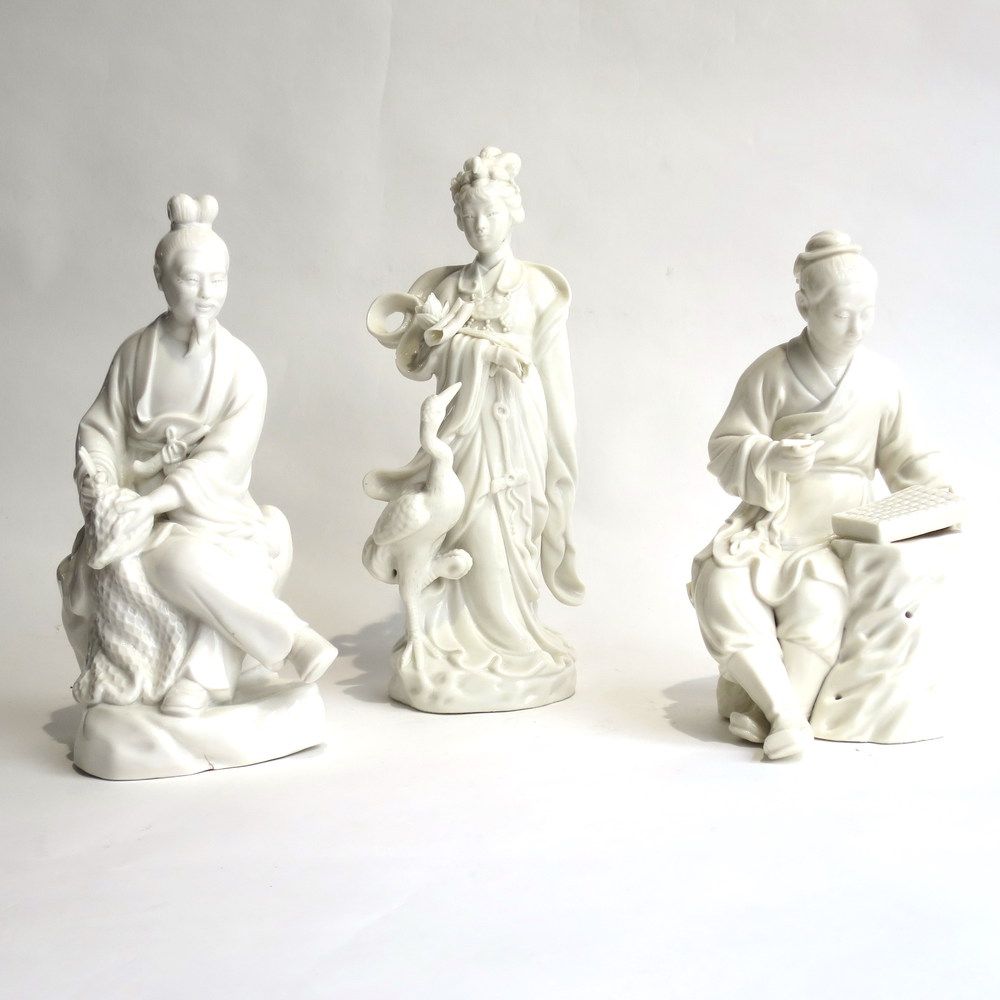 TRE FIGURE Tre figure in porcellana bianca. H: cm 21 -23,5 - 26 Cina