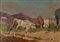 Lotto 296 | CARLO DOMENICI Dipinto olio su faesite "campagna con contadini" cm 35x50