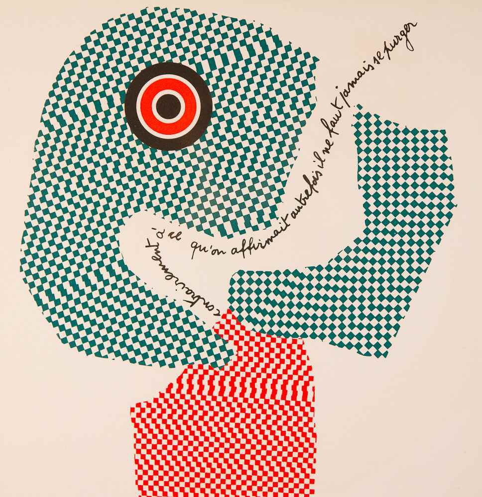 ENRICO BAJ litografia a colori e collage (1972) "Due facce. Le cravate ne vaut pas une medaille" cm 38x38 Pubblicato su catalogo "i libri di Baj" Ed. Electa Opera tratta dal libro-oggetto "Le cravate ne vaut pas une médaille". Esemplare non firmato e non numerato. Firmato e numerato 111/160 il colophon del libro