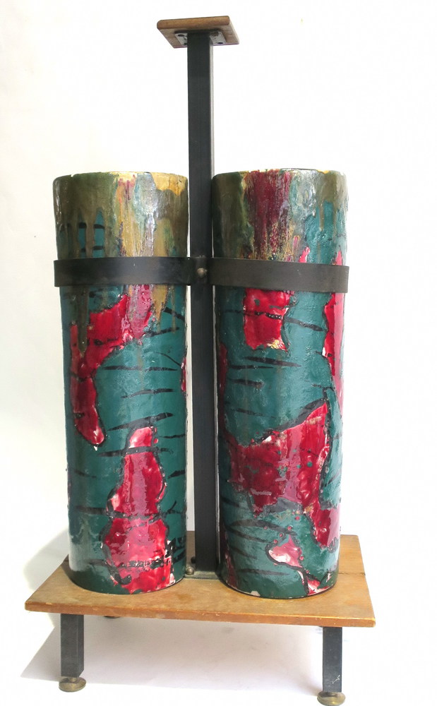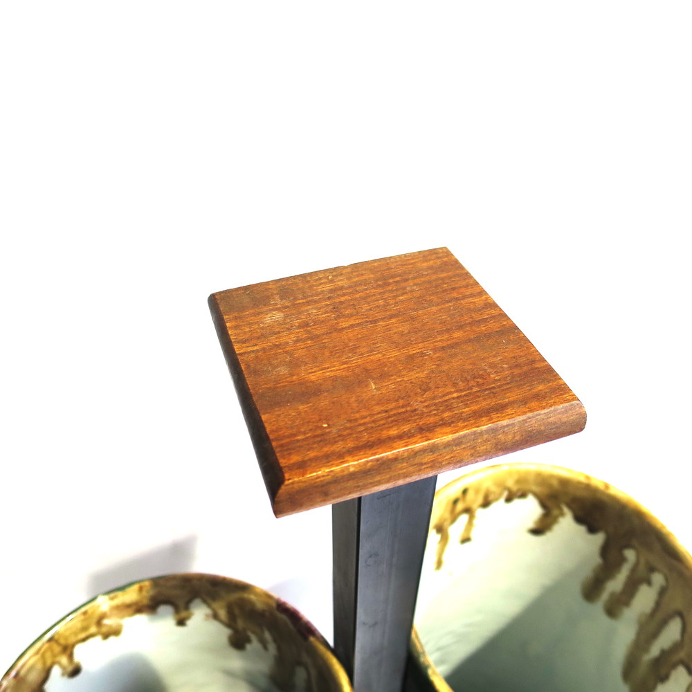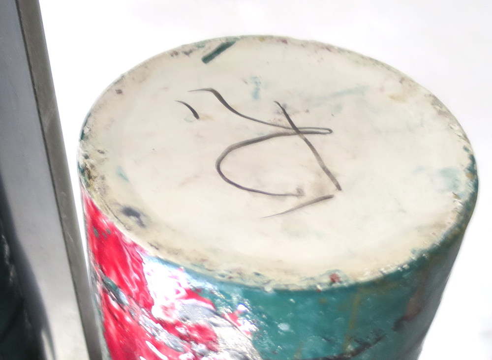 PORTA OMBRELLI in terra cotta smaltata a motivi informali base legno ferro e...