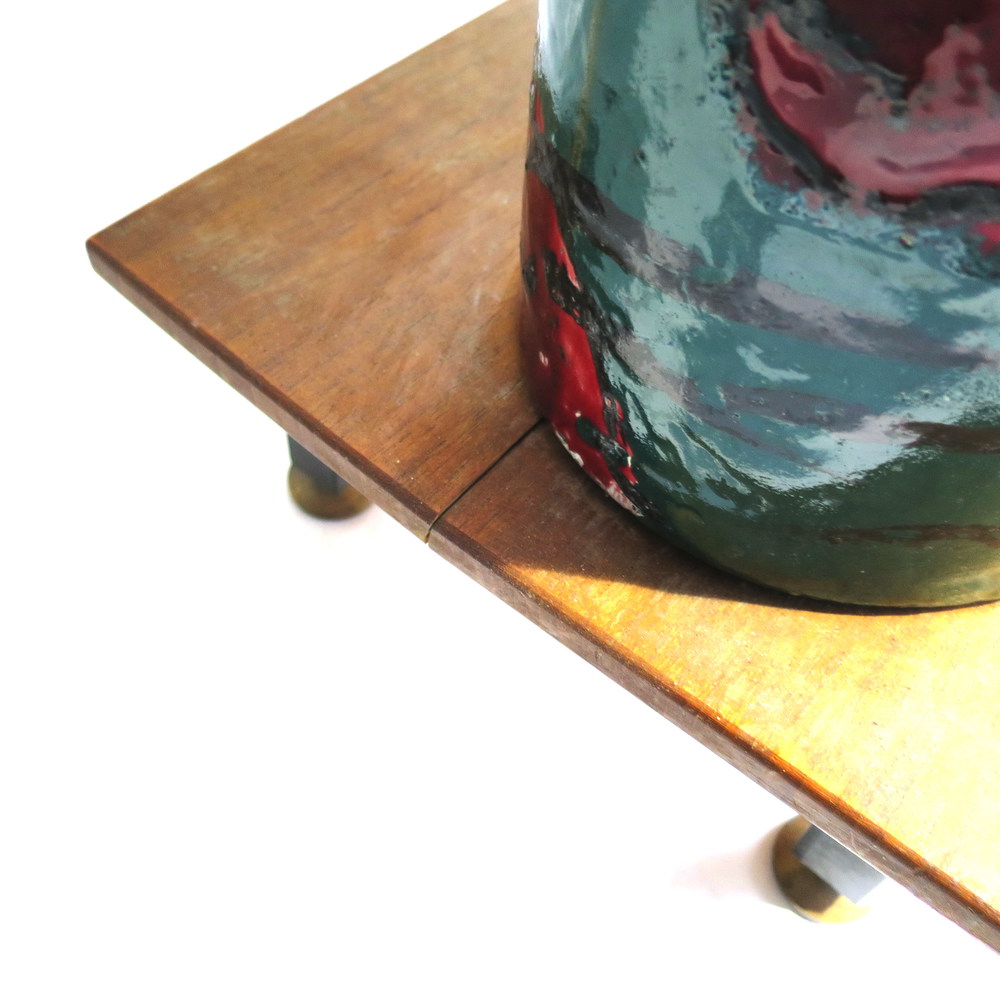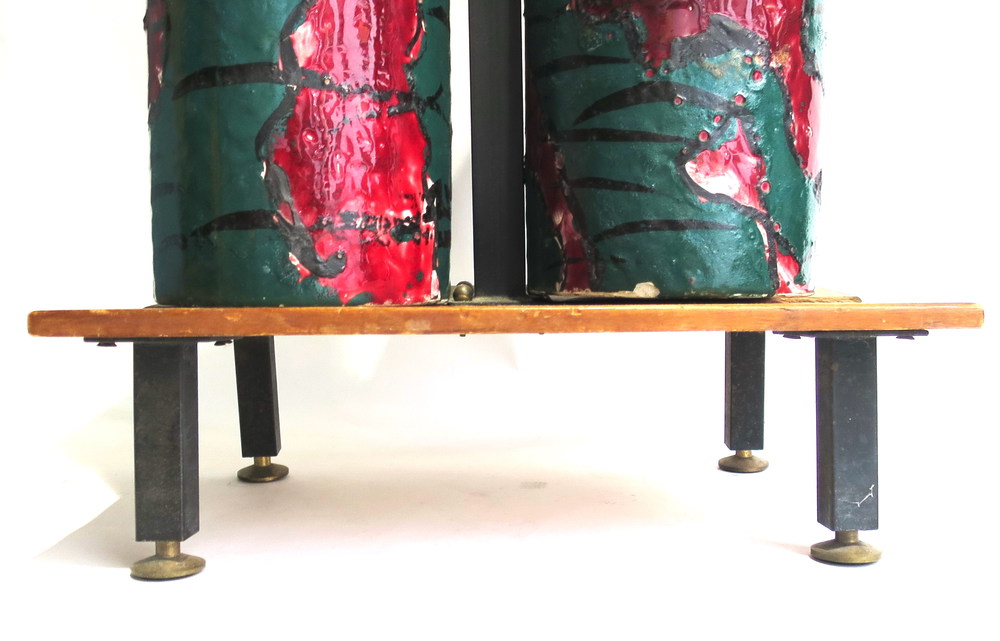 PORTA OMBRELLI in terra cotta smaltata a motivi informali base legno ferro e ottone manifattura italiana design anni 50 cm 71 x 36 x 24