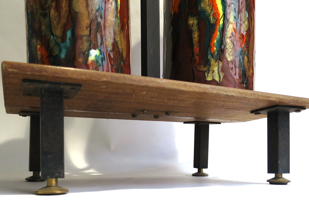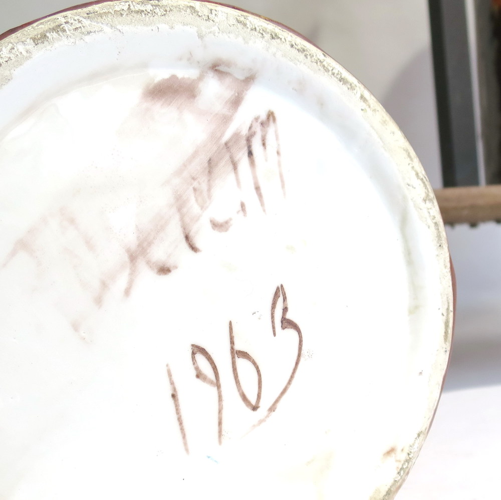 PORTA OMBRELLI in terra cotta smaltata a motivi informali base legno ferro e ottone manifattura italiana design anni 50 cm 71 x 36 x 24