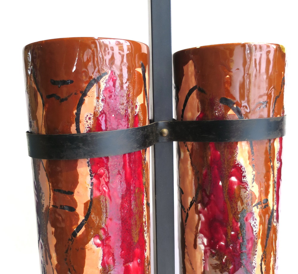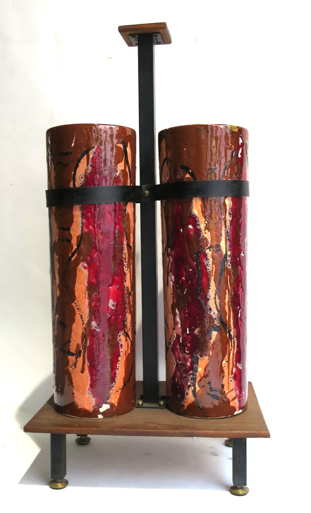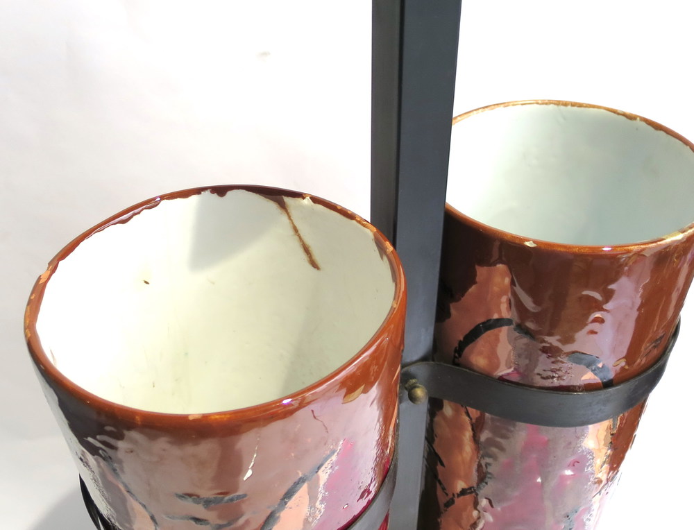 PORTA OMBRELLI in terra cotta smaltata a motivi informali base legno ferro e...