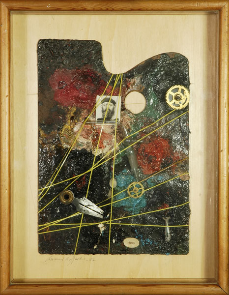 Giovanni Raffaelli (Viareggio, 1936) Composizione, 1982 Assemblaggio polimaterico su tavola, cm. 45x35 Firma e data in basso a sinistra. € 150/200