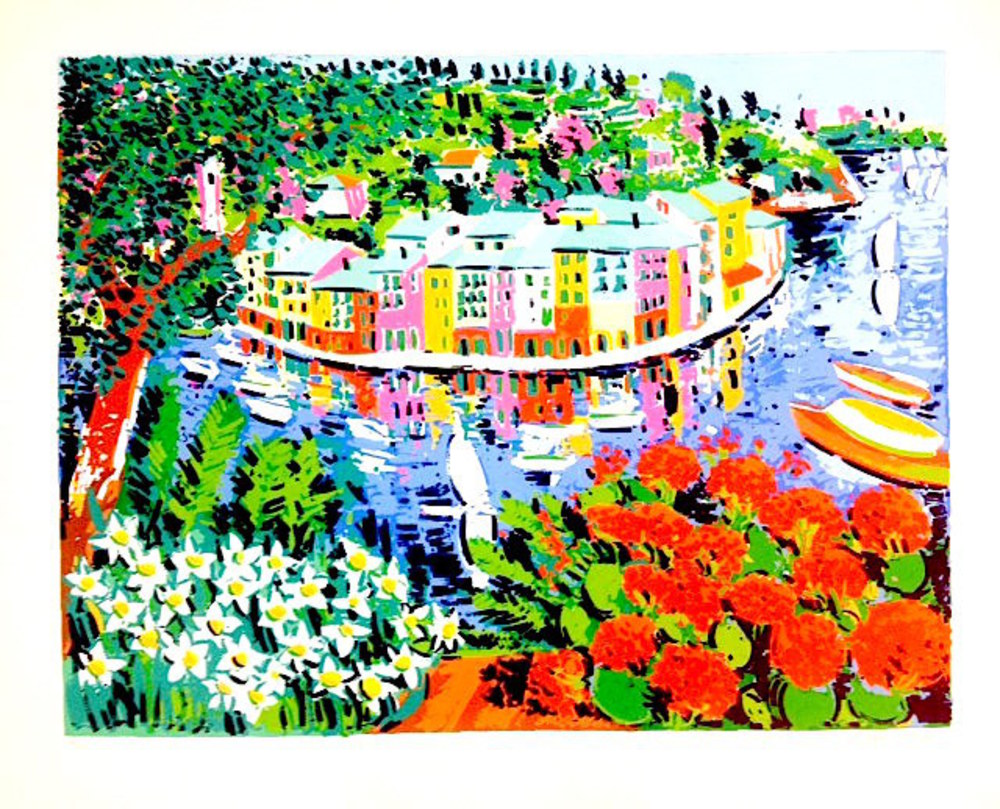 ATHOS FACCINCANI Serigrafia 39/150 "Portofino" cm 110x90 firmato a matita e numerato