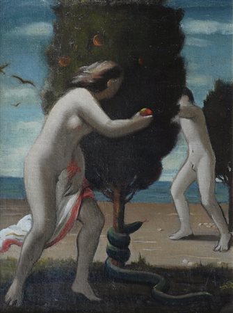 RAM (Ruggero Alfredo Michahelles) (Firenze, 1898 - 1976) Adamo ed Eva Olio su tela intelata, cm. 50x40 € 1.600/2.000