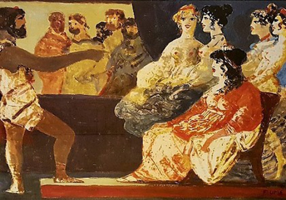 SALVATORE FIUME Litografia tratta da Eneide (libro I) - "Incontro con Didone" - 1989/90 - firmata a matita e numerata - cm 60 x 80