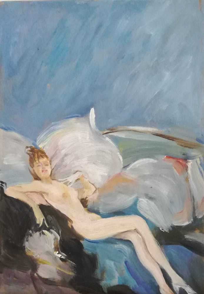 ANONIMO Olio su tavola "Nudo" - cm 19 x 13