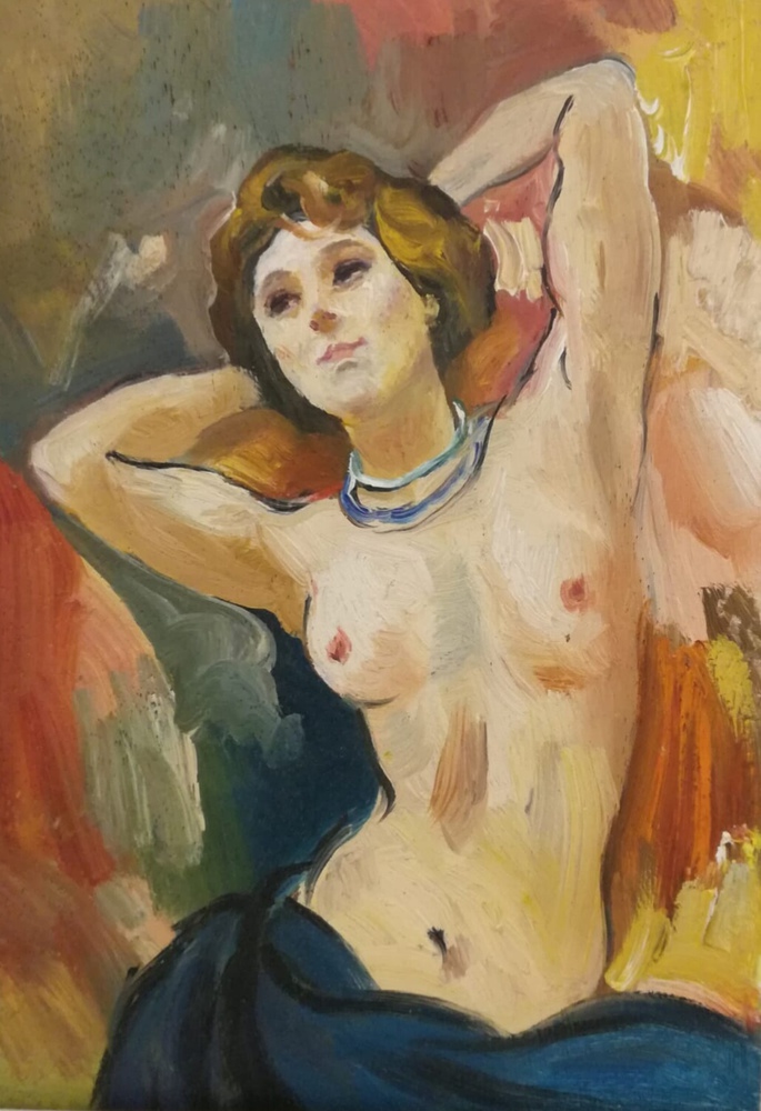 ANONIMO Olio su tavola "Nudo" - cm 23 x 15.5