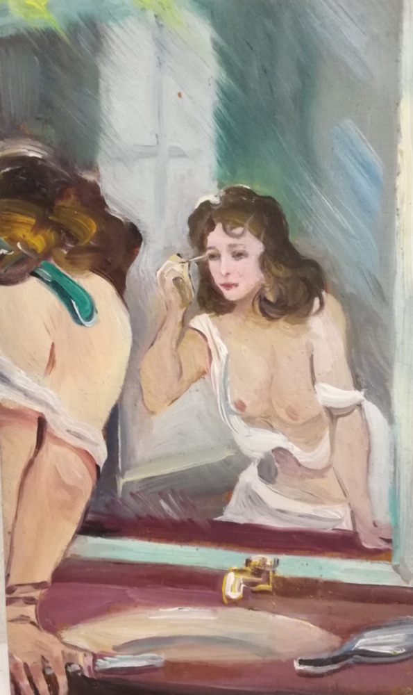 ANONIMO Olio su tavola "Nudo allo specchio" - cm 20 x 12.5