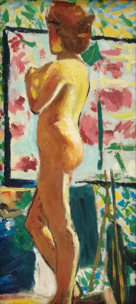 ANONIMO Olio su tavola "Nudo" - cm 16 x 7.5
