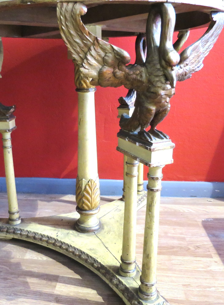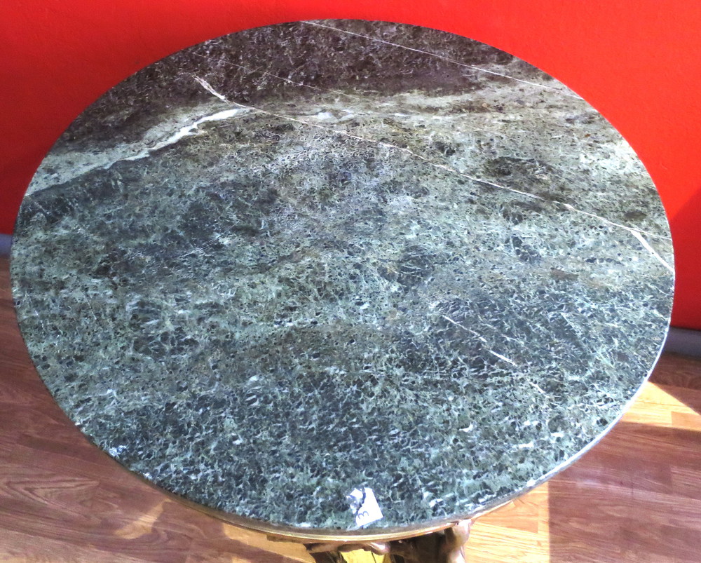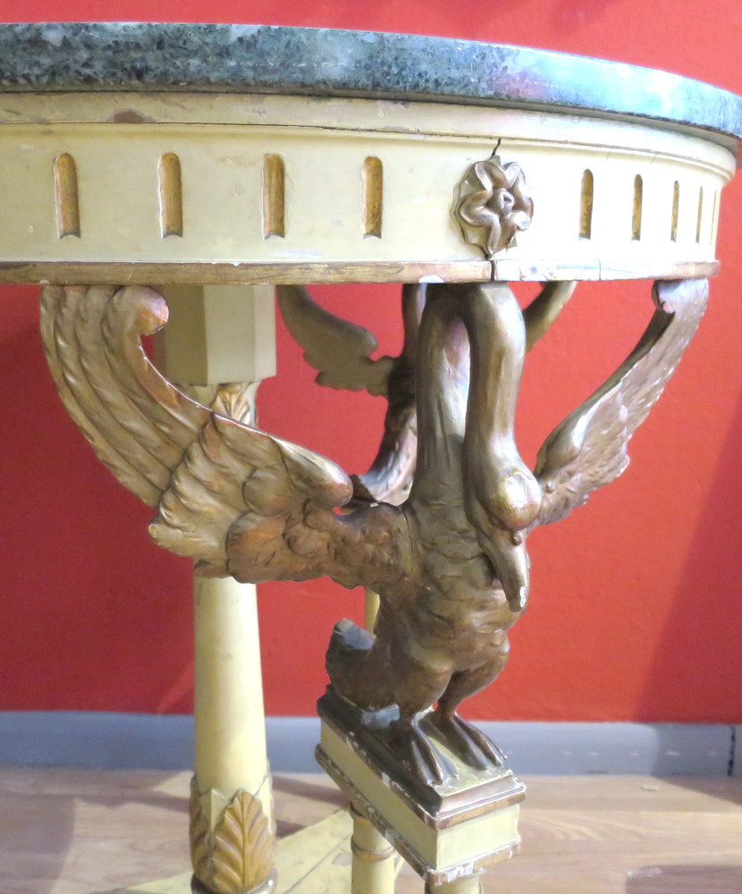 TAVOLO Tavolino in legno laccato con presenza di colonne e volatili a supporto - lumeggiatura in oro - piano in marmo verde - diam. 78 cm - periodo umbertino 1920 ca.