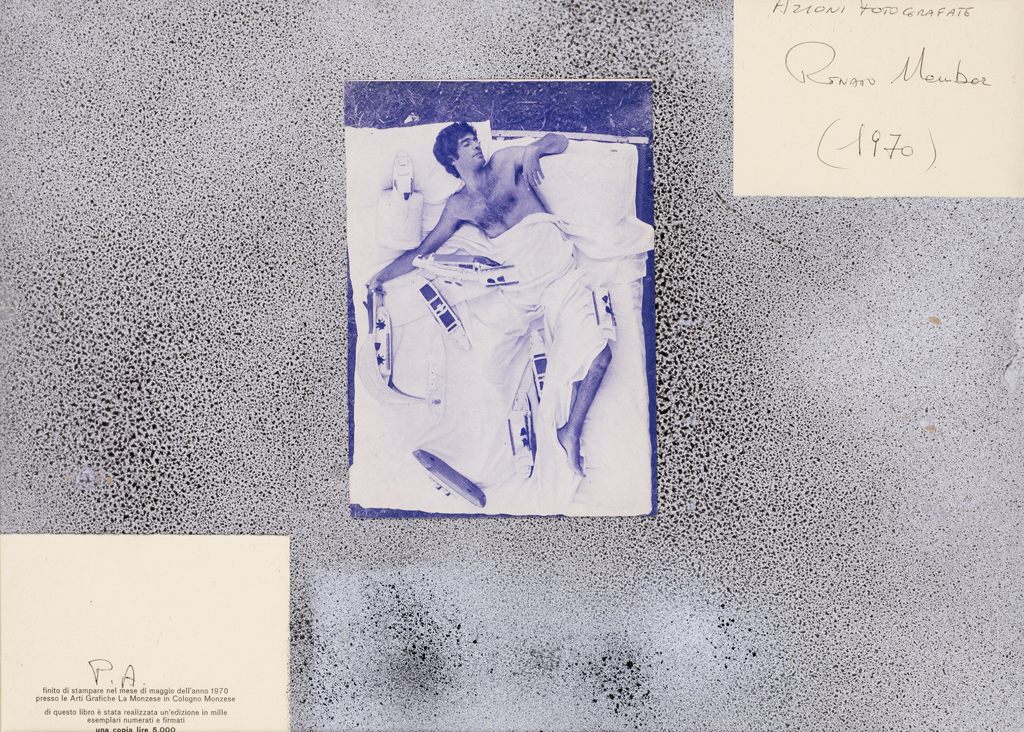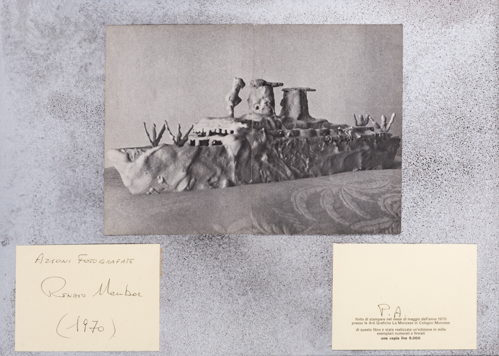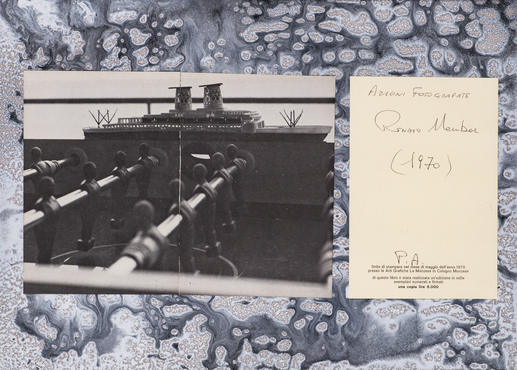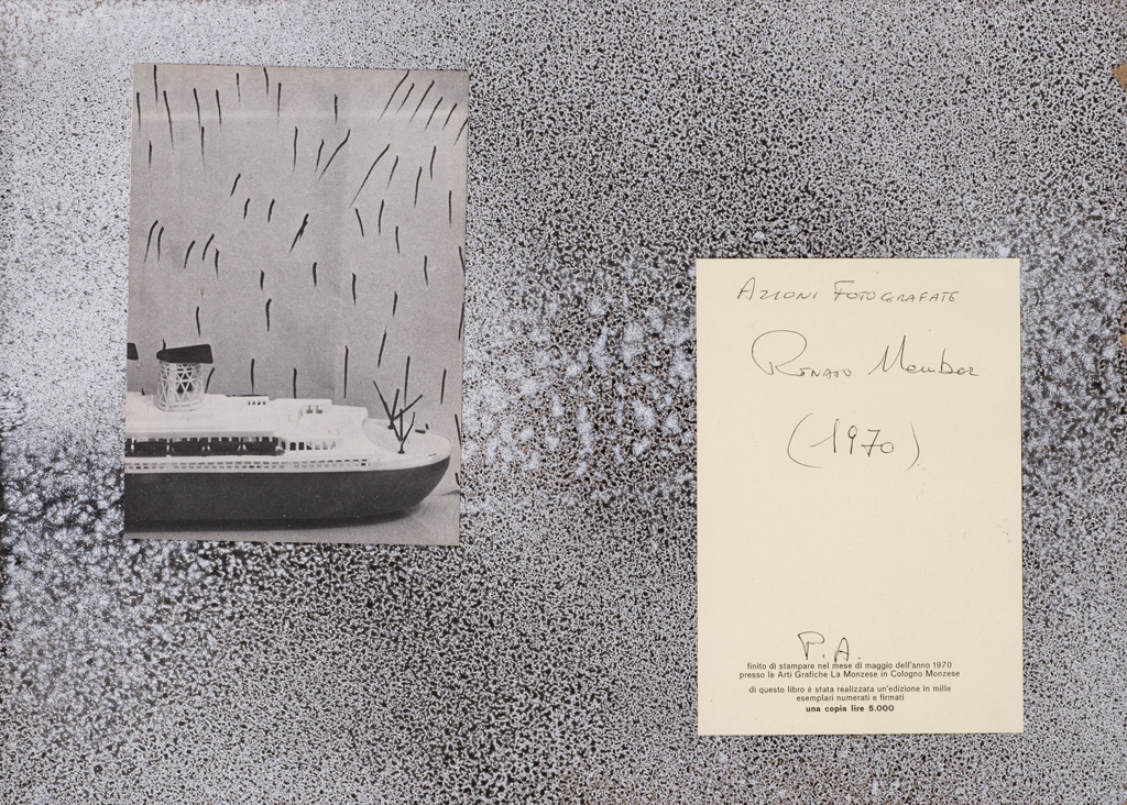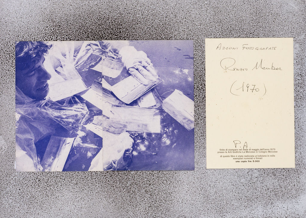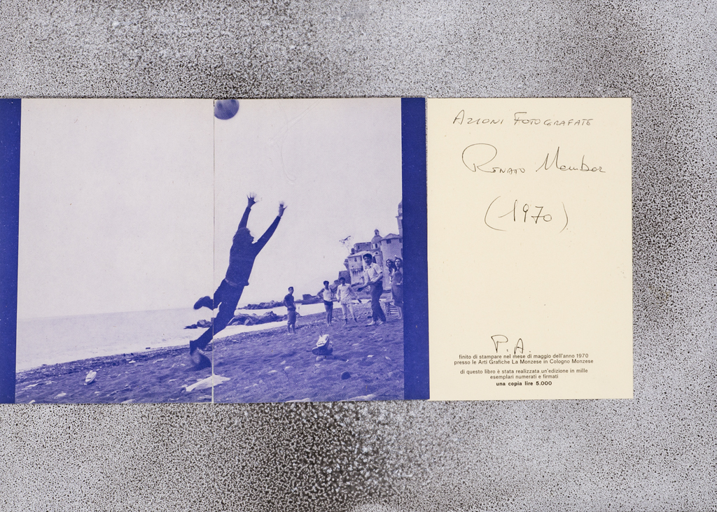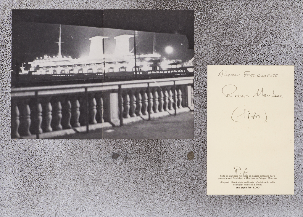 Ciascuna azione fotografata è incorniciata insieme alla fotocopia della quarta di copertina (riportante fotocopia di firma, titolo e iscrizione P.A.) ed applicata su cartoncino