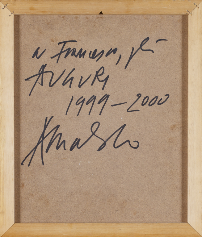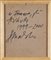 Dedica ad personam, datazione e firma a pennarello al retro del cartone protettivo