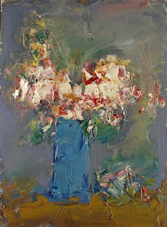 Sergio Scatizzi (Gragnano, 1918 - Firenze, 2009) Fiori Olio su tavola, cm. 55,5x41,5 Firma in basso al centro. € 600/800